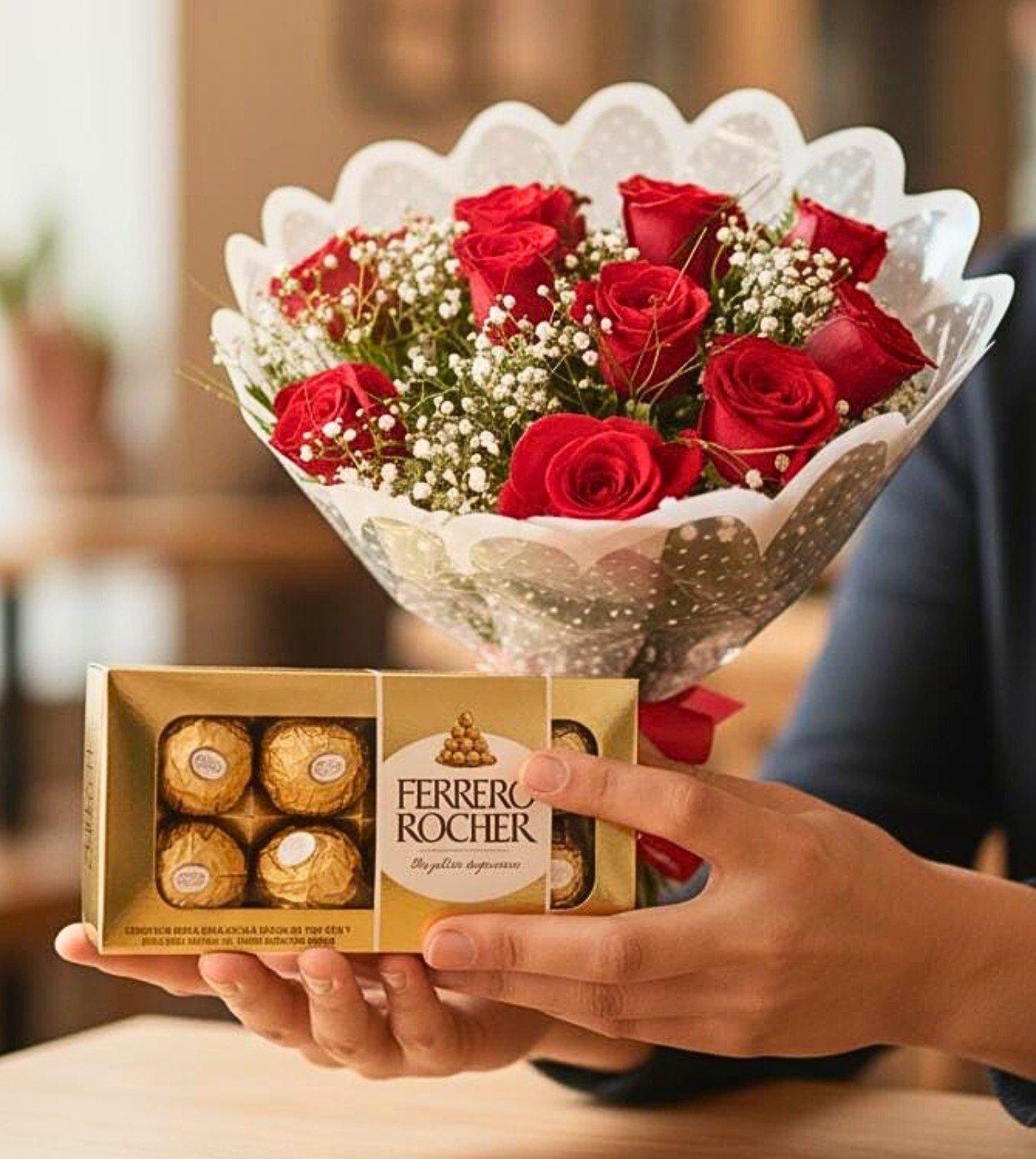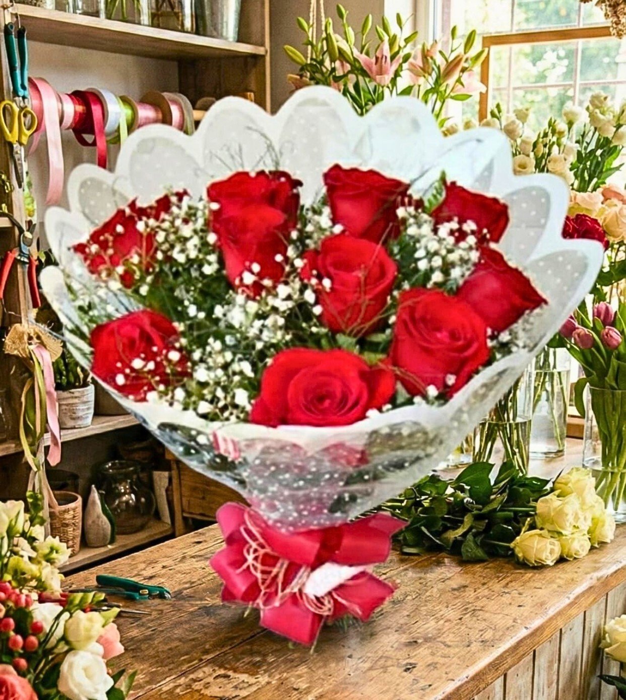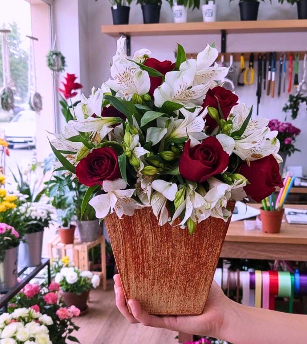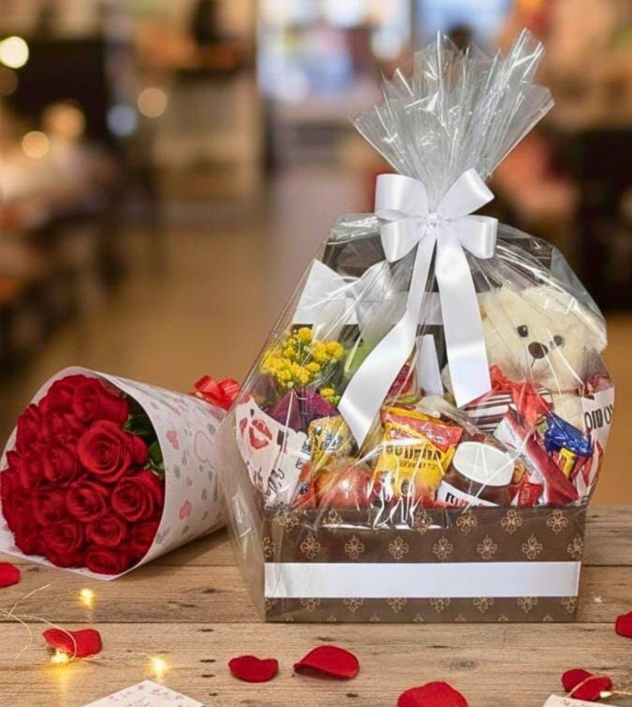 Rosas vermelhas com bolo de aniversário de 1 kg.